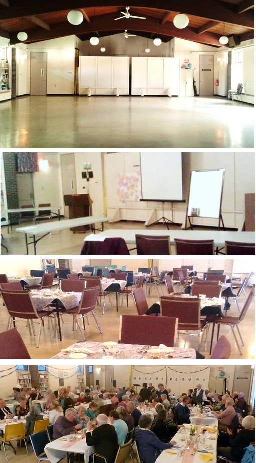 It works well for choir practice, dinner, dancing, exercise class, playgroup, crafts, card parties, receptions, parties, martial arts, games nights, etc.