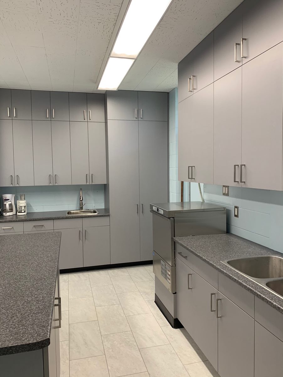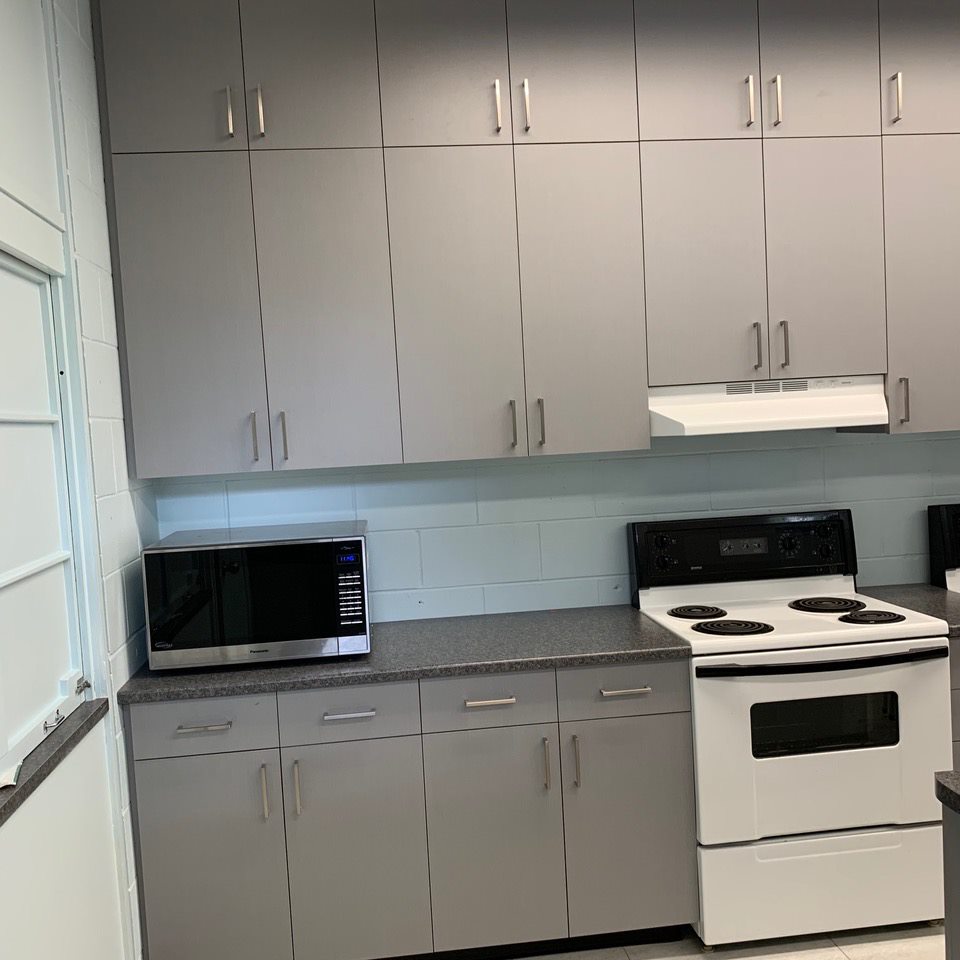Our kitchen and conference room are adjacent as prep spaces or for small group work. The washrooms are located in the Hall.